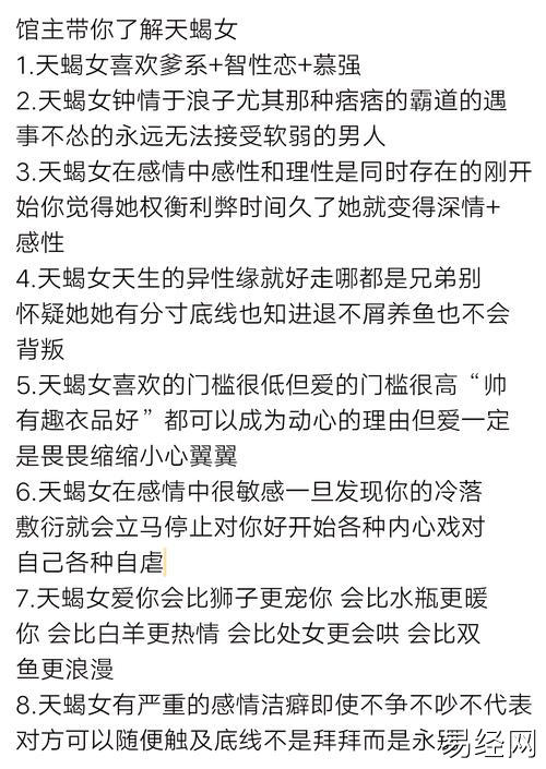 易经网推荐2025最新天蝎座女孩感情观如何改变 天蝎座女生爱情心态分析是什么意思?,最新生肖运势,下面是详细内容: 天蝎座女孩的感情观可能会随着时间、个人经历和环境的变化而发生显著变化。了解这...