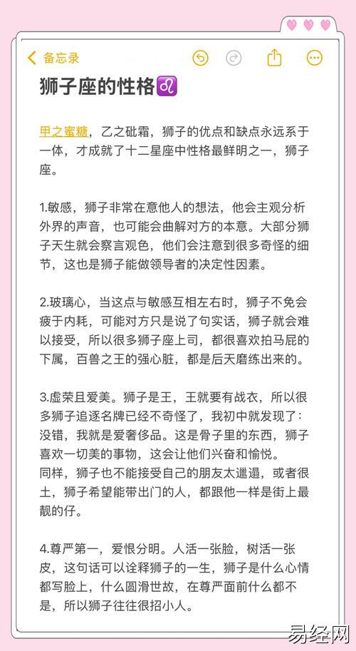 易经网推荐2025最新狮子座跟什么性格不合的人 狮子座和什么座朋友不合是什么意思?,最新生肖运势,下面是详细内容: 狮子座是一个热情、自信且喜欢成为焦点的星座,但他们在与某些星座相处时可能会遇...