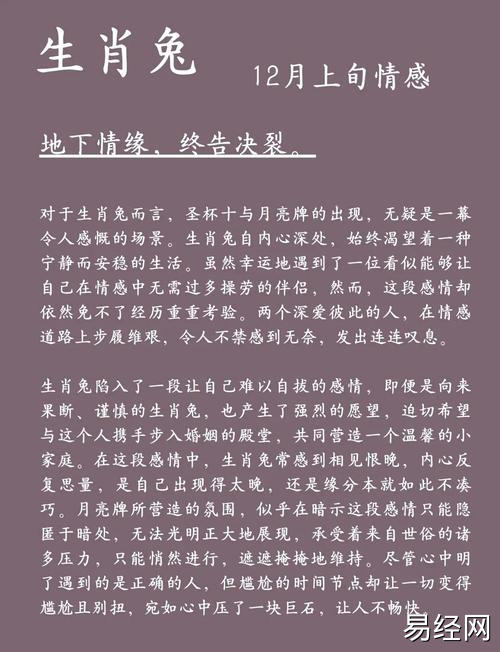 易经网推荐2025最新男属羊女属兔财运如何 羊和兔适合干生意吗是什么意思?,最新生肖运势,下面是详细内容: 属相婚配作为一种古老的文化现象,至今仍影响着许多人的婚姻选择。男属羊与女属兔的组合,...