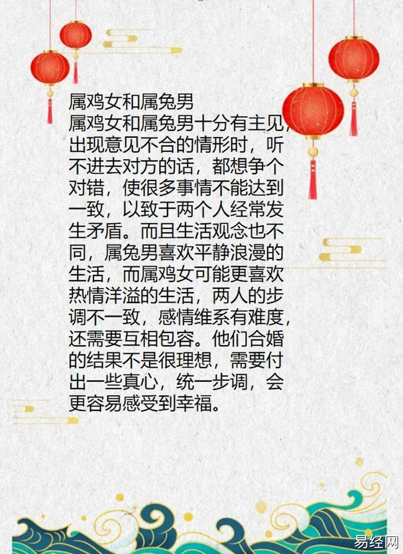 易经网推荐2025最新1987属兔与属鸡婚姻 1987年属兔女和属鸡男的关系是什么意思?,最新生肖运势,下面是详细内容: 1987年出生的属兔人和属鸡人在婚姻配对上,从生肖命理学的角度来看,通常被认为是相...