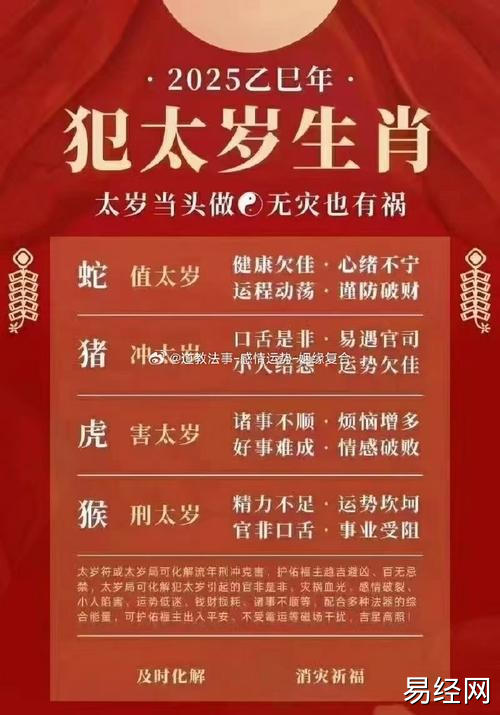 易经网推荐2025最新为什么属猪的易犯太岁呢 2025年属猪冲太岁穿什么内衣是什么意思?,最新生肖运势,下面是详细内容: 在中国传统文化中,太岁被视为一种极其重要的存在。它源于古代的天文观测,代表...