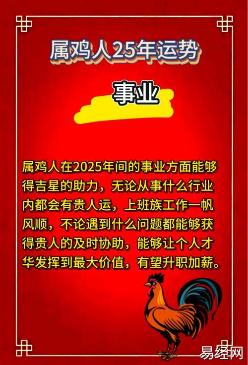 易经网推荐2025最新属鸡人2025年事业财运分析 属鸡人在2025偏财运是什么意思?,最新生肖运势,下面是详细内容: 属鸡人进入2025年,运势迎来诸多变化,事业财运方面利弊交织。 事业运势 属鸡人2025年...