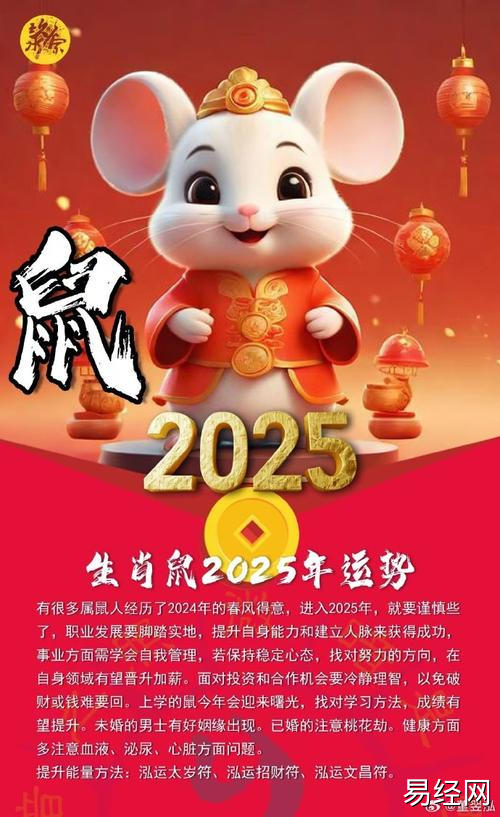 易经网推荐2025最新2025年属鼠今年的财运和运势 2025年鼠女佩戴的吉祥物是什么意思?,最新生肖运势,下面是详细内容: 当我们迈入2025年,属鼠的朋友们自然会对未来的财运和运势充满期待与好奇。作为...