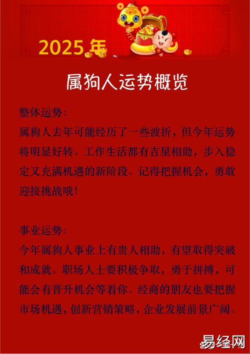 易经网推荐2025最新属狗人2025年事业贵人 2025年属狗人的事业贵人是谁是什么意思?,最新生肖运势,下面是详细内容: 属狗之人,忠诚可靠,责任心强。2025年乙巳蛇年,运势暗流涌动,挑战与机遇并存。若能...